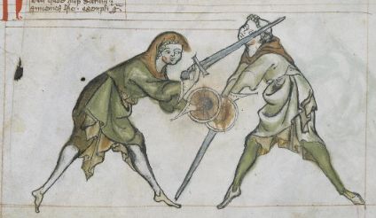 An act of hitting the opponent's hand or weapon with the shield. This is never done in order to harm, but rather in order to pin the opponent's hands at the place, thus creating an opening elsewhere. Schiltslac is typically (but not neccesarilly) followed by a thrust to head, in the place that the opponent can't defend because his hands are pinned elsewhere.