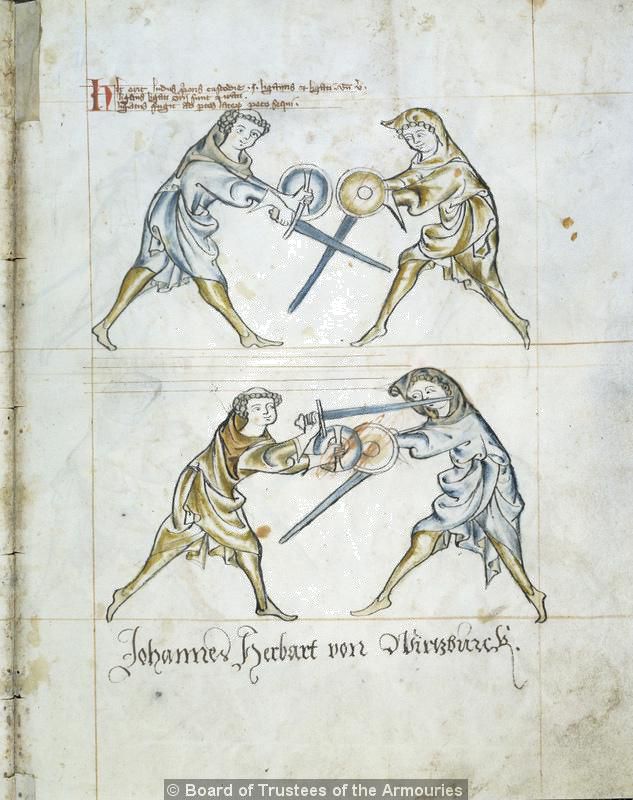 | Hic erit ludus prioris custodie scilicet ligantis & ligati vnde versus Ligans ligati contrarij sunt & irati ligatus fugit ad partes laterum peto sequi Johannes Herwart of Würzburg Johannes Herbart von Wirtzburck | Here will be the play of the prior ward, namely of binder and bound, hence the verse: Binder and bound are opposed and irate; the bound flees to the side, I try to follow. |