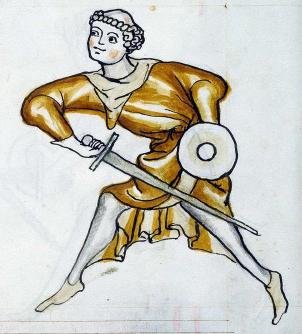 This position is used to close in from contact distance (where you can reach the opponent with the sword without stepping) into grappling distance (where you can reach your opponent with hands without stepping). So priest's special longpoint may be considered a gateway to one of the two grappling plays from the manuscript (frontal arms grab and back arms grab). I.33 considers this a siege, even though it is not happening from out of measure but step closer. You perform this close in (with a switch into priest's special longpoint) from binding below and on the left.