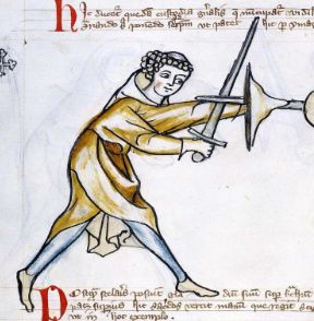 In I.33, this position is introduced by a trick that leads into grabbing the opponent's sword.